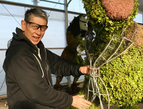 It all starts with a Disney Imagineer who designs a maquette figure, and 3D models. From there, a skilled welder forms the frame, an irrigation specialist adds watering mechanisms and then Gardeners will stuff and plant the frame.