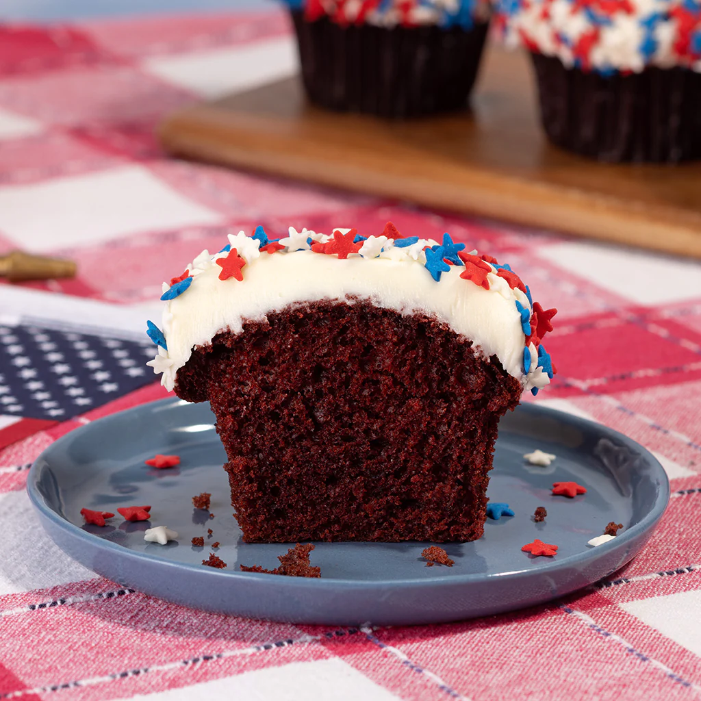 First up, you can top off your holiday celebration with a delicious Independence Day limited edition cupcake featuring southern style light chocolate cake topped with cream cheese frosting and celebratory red, white, and blue Fancy Sprinkles.