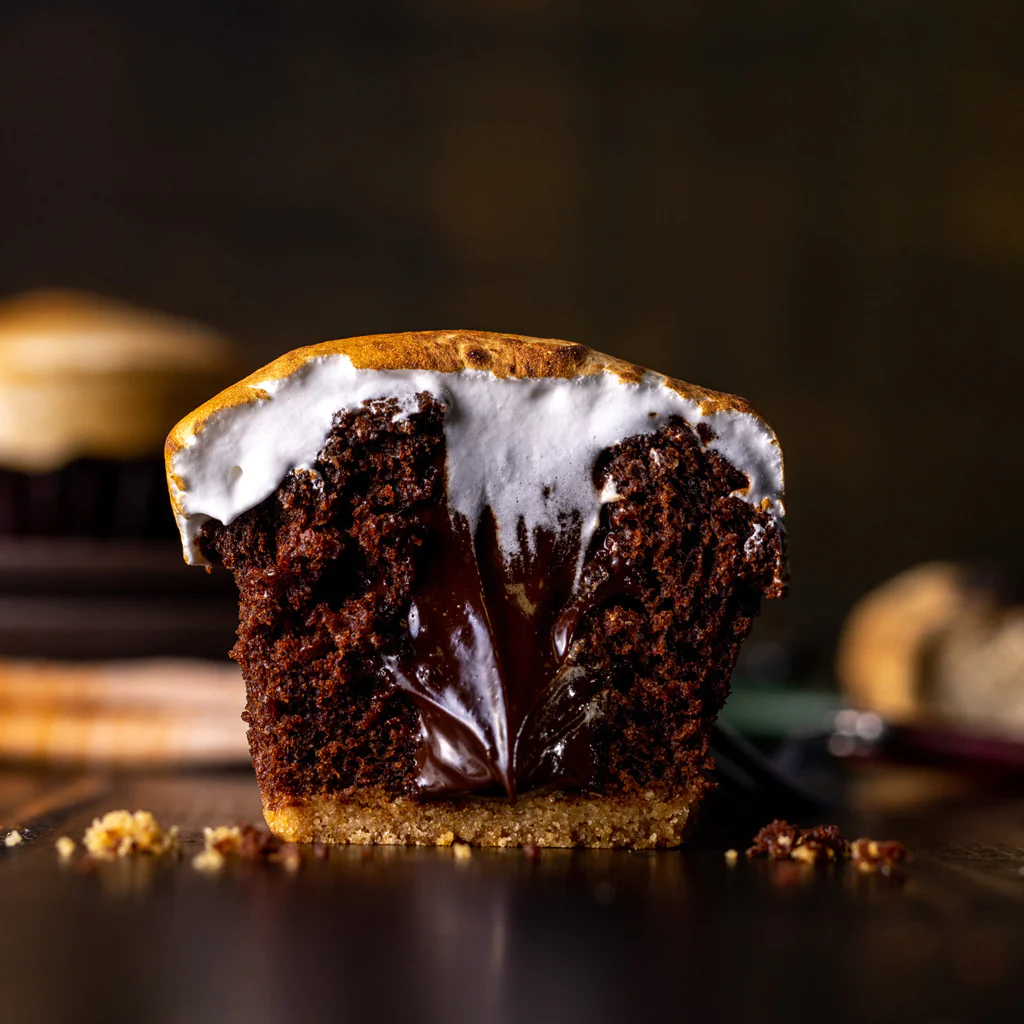 Baking 6/26-7/30 Graham cracker lined Belgian dark chocolate cake filled with bittersweet chocolate ganache and topped with toasted marshmallow frosting.