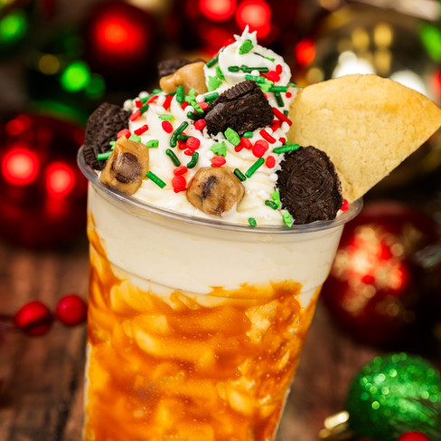 Milk and Cookies Shake: Vanilla shake with caramel, holiday cookies, and chocolate chip cookie dough topped with whipped cream and festive sprinkles (Non-alcoholic) (Available during Mickey’s Very Merry Christmas Party only) (New)