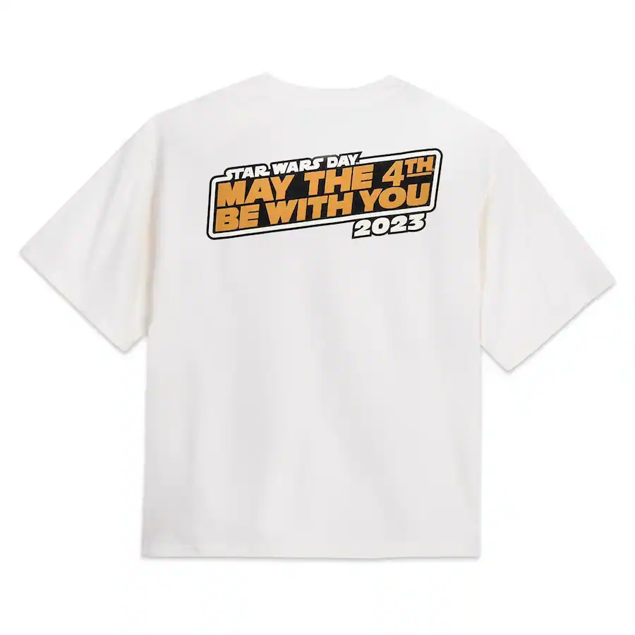 Your Padawans-in-training can also join in the celebration with this commemorative Star Wars “May the 4th Be With You” 2023 T-Shirt for Kids with some of our favorite creatures on the front. Stylish, you will be!